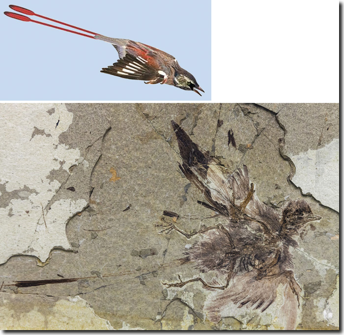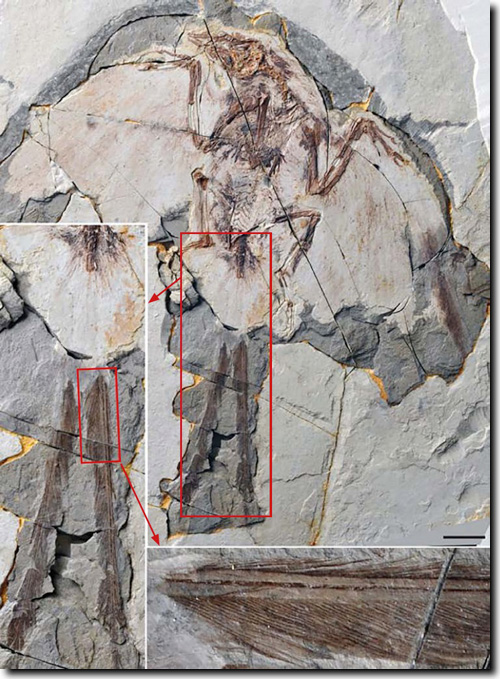 Abb. 5: Eopengornis-Fossil mit langen Schwanzfedern. (Aus Wang et al. 2014; CC BY-SA 4.0)