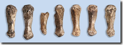 distal: körperfern. dorsopalmar: von der Rückseite zur Handfläche. Hominine: Menschenähnliche; damit werden alle fossilen und lebenden Menschenformen einschließlich ihrer im Evolutionsmodell vermuteten Vorläufer bezeichnet. mediolateral: von der Mitte zur Seite hin. Milchmolar: Mahlzahn des Milchgebisses. Morphologie: Wissenschaft vom Bau und der Gestalt des Körpers der Lebewesen und seiner Organe. palmar: handflächenseitig. phylogenetisch: im Evolutionsmodell die stammesgeschichtliche Entwicklung aller Lebewesen betreffend. postcranial: dem Skelett mit Ausnahme des Schädels zugehörig. proximal: körpernah. Trabekelstruktur: feine Strukturen aus Knochengewebe (Bälkchen), mit denen der Innenraum vieler Knochen aufgebaut ist.