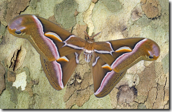 Abb. 1: Der Götterbaum- oder Ailanthus-Spinner Samia cynthia (Hectonichus, CC BY-SA 4.0)