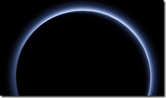 Abb. 1: Plutos Atmosphäre, aufgenommen mit einer Bordkamera von New Horizons am 9. Oktober 2015.