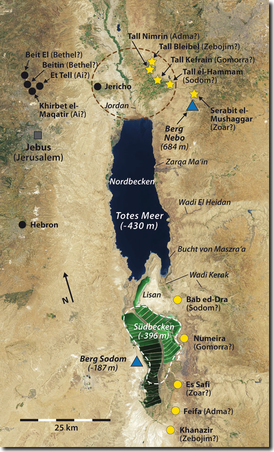• Geographische Lage: in der Jordan-Ebene nördlich des Toten Meeres, einsehbar von Ai/Bethel (Gen 13,1-13) – das Wo.