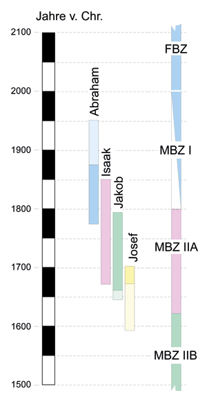 Abb. 8: Die Lebensdaten der Stammväter Israels und von Josef nach dem Chronologie-Modell von van der Veen & Zerbst (2013). Ausschnitt aus ihrer Abbildung 14 (Abdruck mit freundlicher Genehmigung).