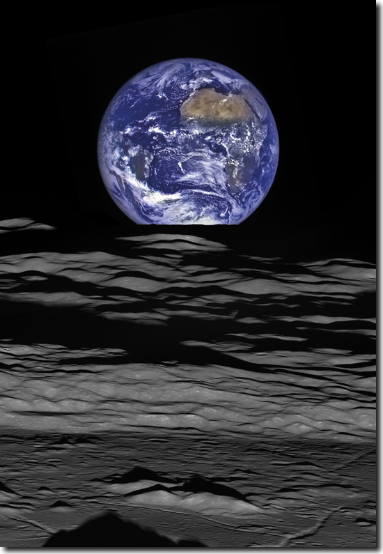 Abb. 1: Die Erde heute. Kontrastreich: der dunkelgraue, unbelebte Erdtrabant und der blaue Planet Erde, voller Leben. Credit/Foto: NASA/Kamera-Wissenschaftsteam des Lunar Reconnaissance Orbiter (LRO), 12. 10. 2015.