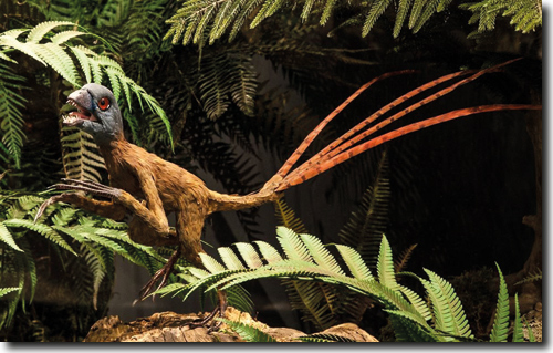 Abb. 7: Bandartige Federn bei Epidexipteryx. (Rekonstruktion, Foto: LWL-Museum für Naturkunde)