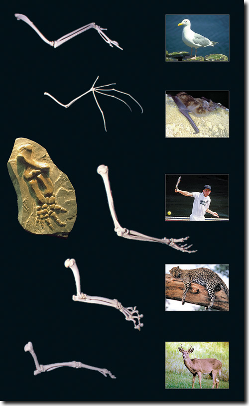 Abb. 4: Das klassische Beispiel der Vergleichenden Biologie, die Bauplanähnlichkeit der Extremitätenknochen der Wirbeltiere.