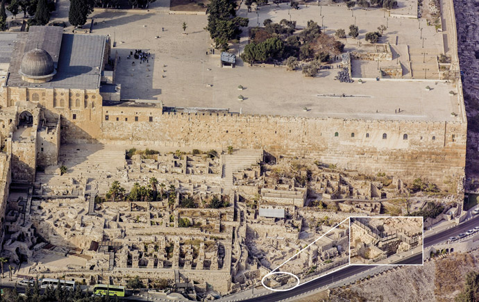 Abb. 1: Südlicher Tempelberg mit dem Ophel. (Bild: Andrew Shiva, CC BY-SA 3.0)