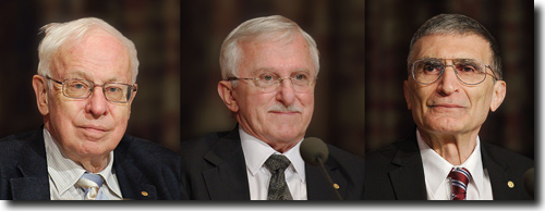 Abb. 1: Die drei Preisträger. Von links: Thomas Lindahl, Paul Modrich und Aziz Sancar. (CC BY-SA 3.0)