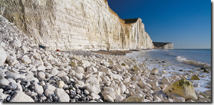 Abb. 1: Nirgendwo ist über den Versuch der Harmonisierung von Geologie und Genesis so viel erdacht und geschrieben worden wie auf der britischen Insel. Seven Sisters Kliffküste in Sussex, UK. (Foto: © milangonda – fotolia.com)