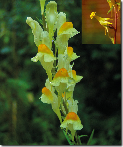 Abb. 4: Normale und epigenetisch veränderte Blüten („Peloria“; rechts oben) des Leinkrauts Linaria vulgaris. (Wikimedia Commons, CC BY-SA 3.0; Peloria © Arne Anderberg, Naturhistorisches Reichsmuseum Stockholm)