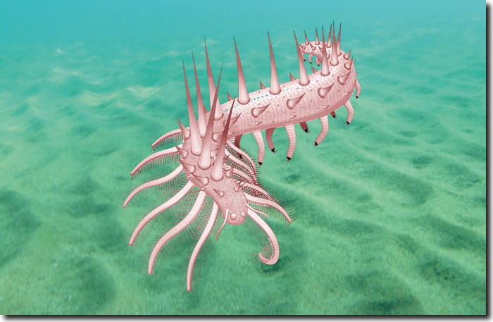 Evolution verläuft vom Einfacheren zum Komplexeren; mindestens müssen alle Baupläne des Lebens einmal einfach begonnen haben, auch wenn im weiteren Verlauf wieder Rückbildungen erfolgen können. Es zeigt sich aber immer wieder, dass bereits sehr früh in der Fossilüberlieferung Tiergruppen mit komplexen Formen überliefert sind. Die ältesten Formen einer Gruppe sind oft komplexer als jüngere (vgl. den Beitrag über Hallucigenia in dieser Ausgabe). Über ein eindrucksvolles Beispiel dieser Art berichten Yang et al. (2015). Die Forscher beschreiben Collinsium ciliosum, einen ungewöhnlich gepanzerten, ca. 8,5 cm langen Lobopoden aus der unterkambrischen Xiaoshiba-Lagerstätte in Südchina (Abb. 1). Lobopoden sind ausgestorbene wurmartige Organismen mit füßchenartigen Anhängen; sie haben im Meer (marin) gelebt und werden gewöhnlich zu den auch heute lebenden Stummelfüßern (Onychophora, „Würmer mit Füßchen“) gerechnet und als deren mögliche Vorfahren diskutiert. Die etwa 180 heute lebenden Stummelfüßer sind recht einheitlich gebaut und bilden einen eher wenig bedeutenden Anteil am Ökosystem von Regenwäldern (Yang et al. 2015, 1). Eine stammesgeschichtliche Verbindung zu den marinen kambrischen Formen erscheint aufgrund der Ökologie der heute bekannten Formen nicht naheliegend.