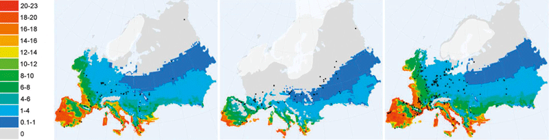 Abb. 1: Bevölkerungsdichte während der letzten Eiszeit nach Tallavaara et al. (2015)