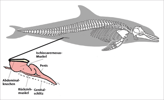Im Hinterleib der Wale und Delfine stecken paarige Knochen, die gewöhnlich als evolutionär bedingte Reste eines früheren Beckens von Landsäugetieren interpretiert werden. Dass diese Abdominalknochen nicht funktionslos sind, weil sie die Muskulatur der Geschlechtsorgane unterstützen, ist schon lange bekannt. Eine neue Studie offenbart darüber hinaus artspezifische Anpassungen, aus denen geschlossen werden kann, dass diese Knochen nicht als bloße Rückbildungen interpretiert werden können – erneut das Ende eines rudimentären Organs.
