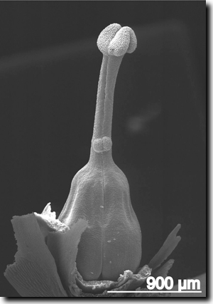 Abb. 2: Elektronenmikroskopische Aufnahme des Stempels von Sebaea aurea. Foto: Jonathan Kissling.