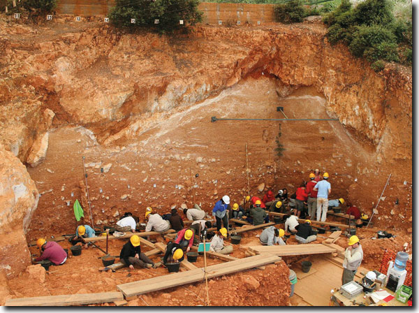 Abb. 4: Aufnahme von einer Grabungskampagne (2008) in der Gran Dolina, einem Höhlensystem in der Sierra de Atapureca (Gebirgszug in der Provinz Burgos, im Nordwesten Spaniens). Zu diesem Höhlensystem gehört auch die im Text erwähnte Fundstelle Sierra de los Huesos. (Wikipedia, Foto: Mario Medesto Mara; GNU Freie Dokumentations-Lizenz)