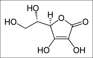 Abb. 3: Der Mensch muss seinen Bedarf an Vitamin C (Ascorbinsäure; Abb. unten) durch Nahrungsaufnahme (z. B. Zitrusfrüchte) decken, da er kein funktionsfähiges Gen für das Enzym L- Gulono-y lacton-Oxidase besitzt, das für die Synthese von Ascorbinsäure erforderlich ist. Es gibt Lebewesen, die dieses Gen besitzen (z. B. die Maus) und Ascorbinsäure biosynthetisch herstellen. Ein DNA-Abschnitt im Genom des Menschen, der dem Gen bei der Maus ähnlich ist, wird als Pseudogen bezeichnet. Neben dem Menschen sind eine ganze Reihe von Lebewesen auf Vitamin C-Quellen angewiesen. Foto: Alterfalter, fotolia.com