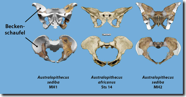 Diese Probleme zeigen sich bei Australopithecus sediba eindrucksvoll.