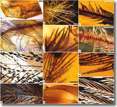 Unter den in Kanadischem Bernstein gefundenen Federfragmenten finden sich auch alle Strukturmerkmale, die für die Ausbildung der flächigen Federfahne erforderlich sind. Die Autoren ordnen diese Federn flugfähigen Tieren – Vögeln aus der Kreidezeit – zu.