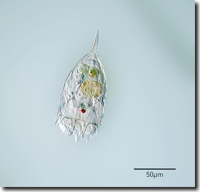 Abb. 1: Das Rädertierchen Keratella cochlearis. Foto: Timm Reinisch (Wikipedia, Creative Commons Lizenz)
