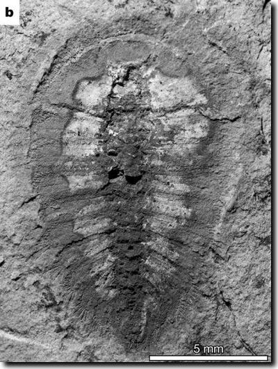 Abb. 1: Sehr gut erhaltener Gliederfüßer aus der Gruppe der Chelonielliden. Obere Fezouata-Formation. (Aus van Roy et al. 2010, Abruck mit freundlicher Genehmigung)