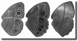 Abb. 4: Das Gen Dll, das bei der Entwicklung von Gliedmaßen eine wichtige Rolle spielt, ist auch bei der Bildung von Augenflecken auf Schmetterlingsflügeln aktiv. Homologa von Dll werden auch im Mesoderm, in Neuralleistenzellen und im Kopfbereich verwendet (Gilbert 2003a, 762). (© Amtoia Monteiro, University at Buffalo; mit freundlicher Genehmigung)