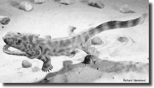 Abb. 1: Rekonstruktion von Acanthostega als schwimmender Vierbeiner (© Richard Hammond)