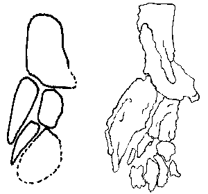 Die Ähnlichkeit zum typischen Tetrapoden-Handskelett ist jedoch nur sehr vage, wie aus Abb. 5 rechts hervorgeht. Sie wird eher in das Skelett hineingelesen als aus ihm erschlossen. Dennoch reiht sich Panderichthys aufgrund dieser neuen Befunde viel besser in die Gruppe von Fischen ein, deren Extremitäten gewisse Ähnlichkeiten mit Tetrapodenbeinen zeigen.