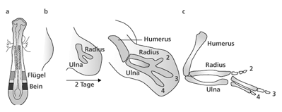 3. Ontogenetische Prinzipien der Gliedmaßenentwicklung bei Vögeln und Landwirbeltieren