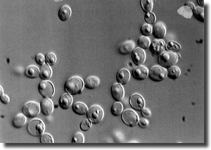 Abb. 5: Die beiden Hefen Candida albicans (A) und Candida glabrata (B) haben unterschiedliche Größen ihres mitochondrialen Genoms, vergleiche Tab. 3. Beide Arten sind opportunistische Krankheitserreger. Fotos: Herbert Seiler, Lehrstuhl für Mikrobielle Ökologie, Technische Universität München.