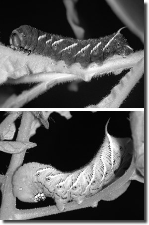 Abb.1: Die schwarze und grüne Form des Tabakschwärmers (Manduca sexta). (Fotos: Yuichiro Suzuki, Abdruck mit freundlicher Genehmigung)