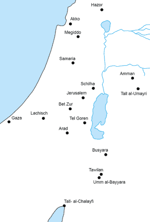 Grosses Bild Die wichtigsten im Artikel erwähnten Ortschaften in Israel und Jordanien.