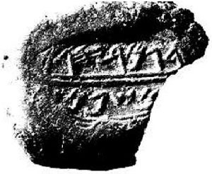 Bild mit Skala Abb. 6: Tonbulle „Jehuchals, des Sohnes Schelemjahus, des Sohnes Schobis“ aus Jerusalem (mit freundlicher Genehmigung von A. LITHWICK, Shalem Center, Jerusalem).