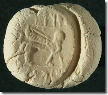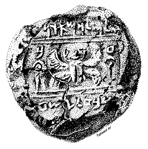 Abb. 5: Tonbulle „Gemarjahus, des Sohnes Schaphans“ aus Jerusalem (mit freundlicher Genehmigung von D. T. ARIEL, Israelische Antikenbehörde).