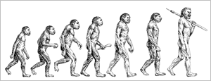 Abb. 1: „Optisches Storytelling“ der Entstehung des Menschen aus dem Tierreich.