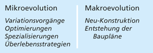 Tab. 1: Kurzcharakterisierungen von Mikroevolution und Makroevolution.