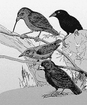 Abb.1: Einige Arten der Darwinfinken mit verschiedenen Schnabelformen.