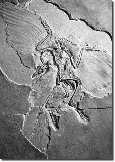 Abb. 1: Der „Urvogel“ Archaeopteryx lithographica, Abguß des Berliner Exemplars. (Naturmuseum Senckenberg, Frankfurt)