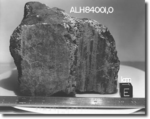 Abb. 4: Der 1984 im antarktischen Eis gefundene Meteorit ALH84001. Vermeintliche Lebensspuren hielten der Prüfung nicht stand.