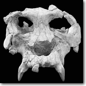 Abb. 1: Der Schädel von Pierolapithecus catalaunicus. (Aus Moyà-Solà et al. 2004, Copyright 2004 by AAAS; Abdruck mit freundlicher Genehmigung)