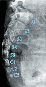 B. Die zahlenmäßige Mehranlage voneinander isolierter Steißbeinwirbel, die Hypertrophie (= vermehrtes Wachstum) einzelner oder eines Steißbeinwirbels mit überdurchschnittlicher Ausdehnung in der Längsrichtung des Körpers und dadurch bedingter Vorwölbung der Haut oder die kegelförmige Wucherung an der Steißbeinspitze sind äußerst seltene Befunde im Vergleich zur Variante „A“. Nach experimentellen Ergebnissen an der Maus entsprechen diese Fehlbildungen dem morphologischen Bild bei Funktionsverlusten der Hox 10- und Hox 11-Cluster sowie der loss-off-function Mutation im Hox-b13-Cluster. In diesen Fällen trat bei den Versuchstieren ein überschießendes Wachstum der Strukturen auf, die sich aus der Chorda neuralis ableiten oder durch sie induziert werden. Die z. T. dabei beobachtete numerische Mehranlage von max. 1-2 Steißbeinwirbelkörpern beruht auf der fehlenden Verschmelzung der primär isoliert angelegten Wirbelkörperanlagen des Steißbeins und ihrer eigenständigen Differenzierung zu Wirbelkörpern. Eine weitere Ursache sind ubiquitär auftretende embryonale Tumorbildungen (Teratome), die u.a. die kegelförmigen Wucherungen an der Steißbeinspitze wie bei Fara (1977) beschrieben hervorrufen können.