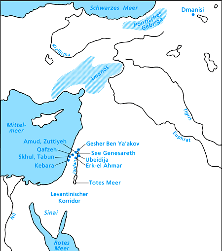 Abb. 1: Die wichtigsten pleistozänen Fundorte im Raum Israel mit angrenzenden Gebieten.