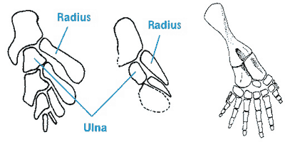 Abb. 2: Tetrapoden-Extremität von Ichthyostega mit 7 Fingern. (Nach Clack 2002a)