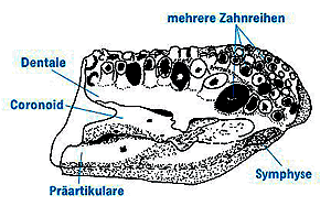 Abb. 10: Eigenartiges Gebiß von Livoniana. (Nach Clack 2002a)