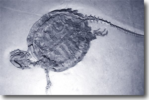 Die isolierte Position der Schildkröten wird auch durch den Fossilbefund hervorgehoben, denn „ganz plötzlich, quasi aus dem Nichts, scheinen sie aufgetaucht zu sein; es wurden bis heute kaum Fossilien von Übergangsformen gefunden“ (www.uni-bonn.de/Aktuelles/Pressemitteilungen/pm02/pm0117-02.html). Erste Fossilfunde sind aus der Obertrias (auf 215 Ma datiert) bekannt. Seither hat sich der Bauplan der Schildkröten kaum verändert (Zardoya & Meyer 2001, 193). Aufgrund von morphologischen Analysen ist nach Zardoya & Meyer (2001, 195) die Linie, die zu den Schildkröten führte, in die Unter- bis Mitteltrias (auf ca. 245-235 Ma datiert) zu stellen, also 20-30 Ma vor dem ersten fossilen Nachweis von Schildkröten. Nach der bisherigen Vorstellung von der Primitivität des anapsiden Schädelbaus der Schildkröten wären ihre Vorläufer bereits im Oberperm zu erwarten (auf 255 Ma datiert).