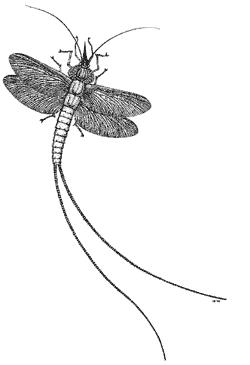 Abb. 1: Rekonstruktion des „Urnetzflüglers“ Homoioptera vorhallensis aus dem unteren Oberkarbon (Namur-Stufe) von Hagen-Vorhalle. (Aus BRAUCKMANN 1991)