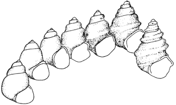 Abb. 1: An derselben Lokalität zeitlich aufeinanderfolgende Formen der Süßwasserschnecke Viviparus brevis im Pleistozän der Insel Kos (Griechanland). Nach WILLMANN (1985)