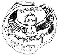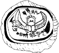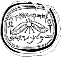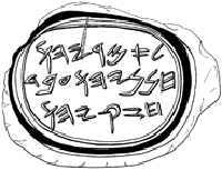 Abb. 2: Siegel mit der Inschrift „Eigentum Hiskias [des Sohnes] Ahas, König von Juda“. Das Piktogramm zeigt eine geflügelte Sonnenscheibe.