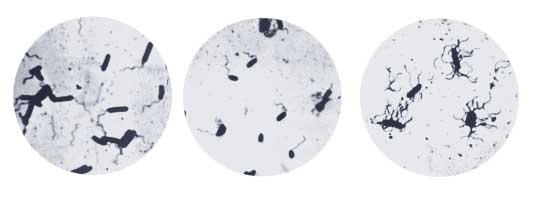 Abb. 1: DOMBROWSKI konnte Anfang der sechziger Jahre mehrfach reaktivierbare Mikroorganismen aus Salzlagerstätten isolieren. Die Abbildung zeigt stabförmige begeißelte Mikroorganismen aus dem Zechstein (Oberperm). (Aus DOMBROWSKI 1965)