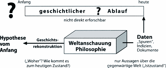 Abb. 3: Schematische Darstellung zur Rolle der Weltanschauung des Naturforschers bei der Rekonstruktion der Phylogenie. (Aus Junker & Scherer 1998)