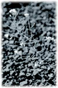 Die Blütenpflanze Arabidopsis thaliana (Acker-Schmalwand) aus der Familie Brassicaceae (zu dieser Familie gehören z.B. Kohl und Rettich) wird als Modellorganismus in der Pflanzengenetik verwendet (Abb. 1). Die Pflanze ist klein, anspruchslos und kann auf begrenztem Raum kultiviert werden. Ihre Generationszeit ist 6 Wochen, das haploide Genom enthält auf 5 Chromosomen etwa 130-140 Millionen Basenpaare DNA. Die komplette Sequenzierung durch die "Arabidopsis Genom Inititative"1 wird für die nächsten 12 Monate erwartet.