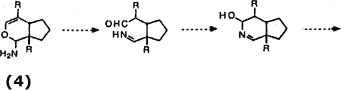 In einem Wiederholungsexperiment des ersten Ansatzes, bei dem zufällig Methylamin statt Ammoniak zur Anwendung kam, gelang der Einstieg nicht nur mit guten 75% Ausbeute, sondern es entstand auch - anders als zuvor - ein Reaktionsprodukt mit gesättigtem terminalem Isopropylrest, wie beim Naturprodukt (s. Abb. 1, (2)). Und: bei früherem Einstieg in die Reaktionssequenz auf der Dialdehyd-Stufe wurde mit gut 65% Ausbeute wieder das Dihydro-proto-Daphniphyllin erhalten, mit absolut regioselektiver Sättigung einer von drei C=C-Doppelbindungen (vgl. Abb. 2, (6)) - nämlich die terminale Isopropenylgruppe -, und somit korrekter Konformation des Gerüstes.